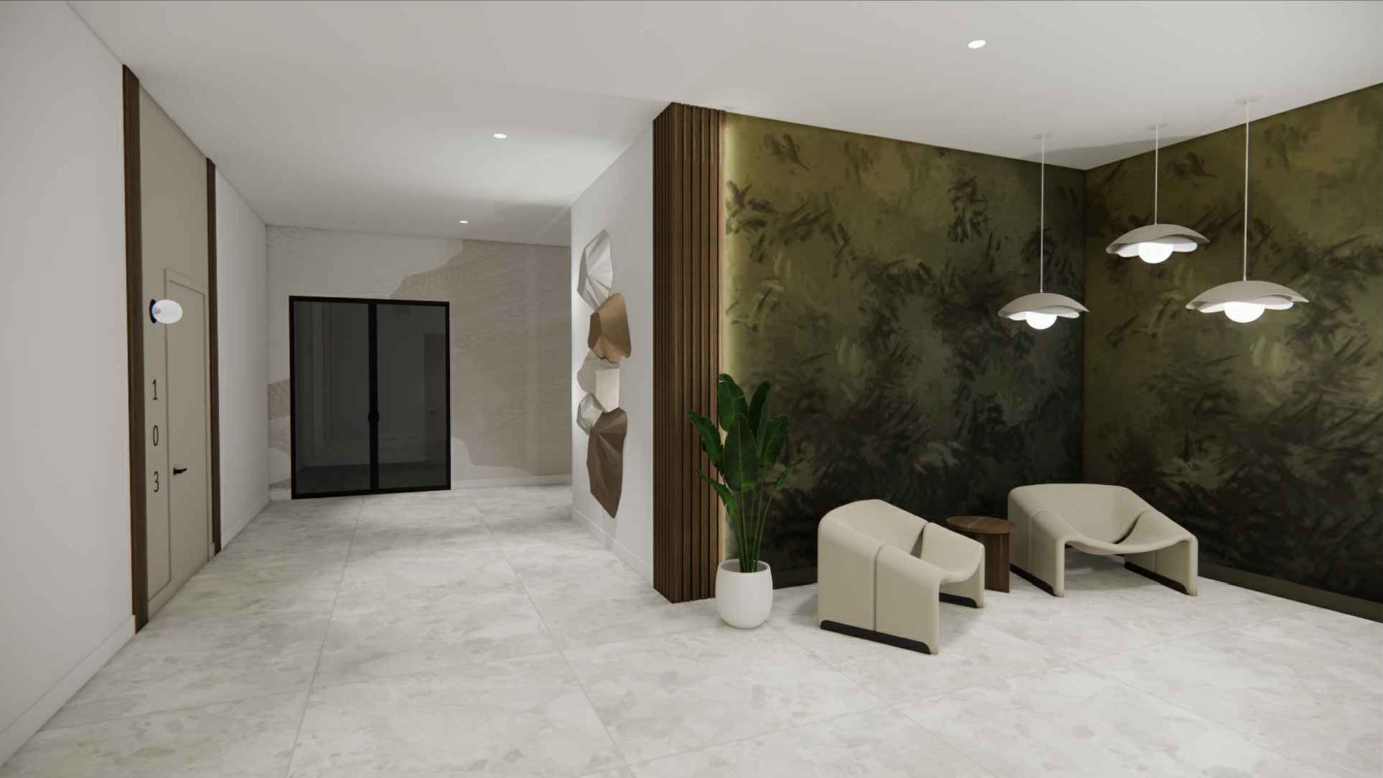 Le bâtiment moderne est desservi par 2 ascenseurs, situés au centre du projet, ils relient les stationnements aux étages de condos. En plus des ascenseurs, des escaliers parcourent les étages à chaque extrémités des étages. L’accès au projet est sécurisé par des cartes et des codes d’accès, et surveillé par caméras.