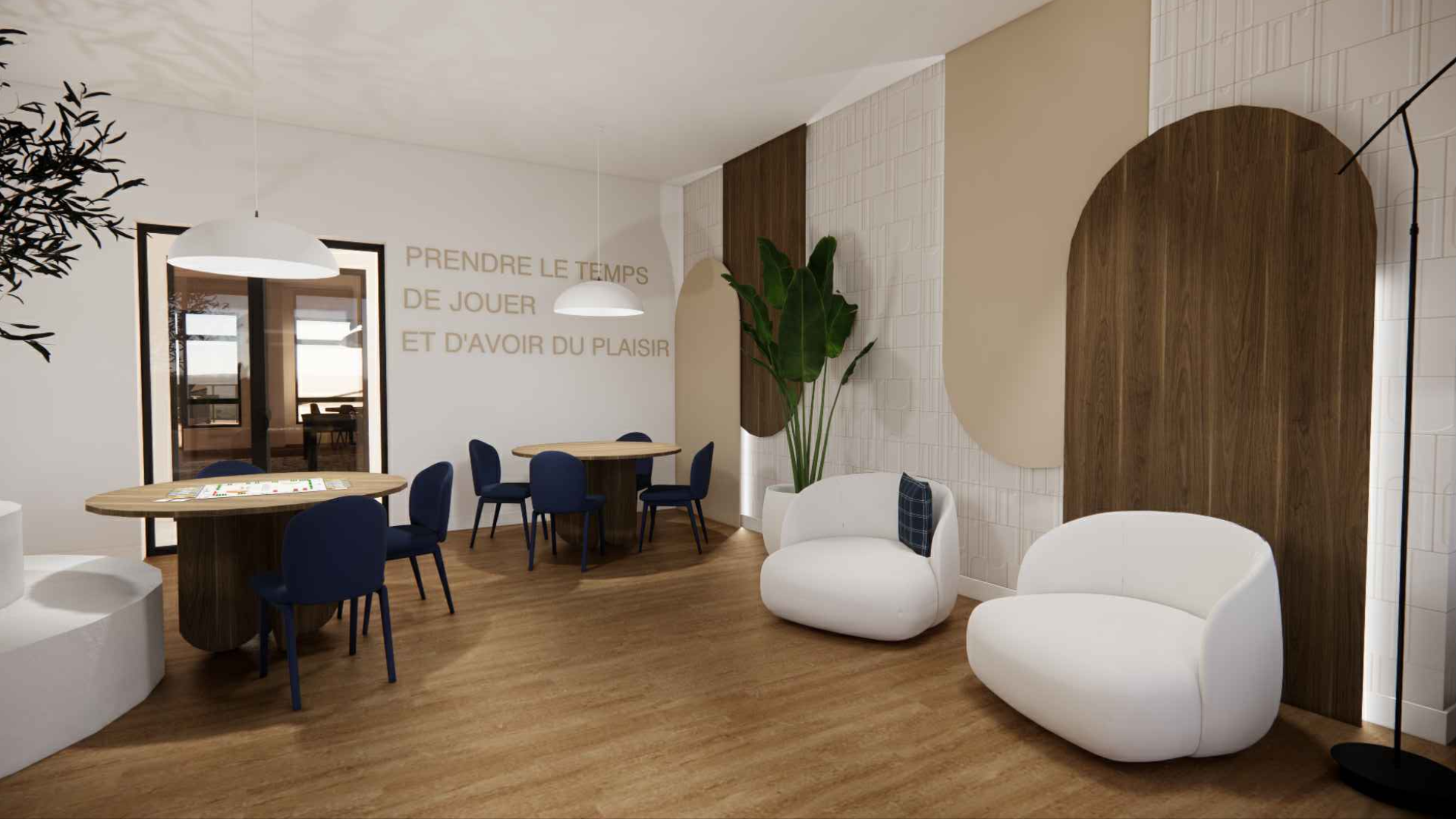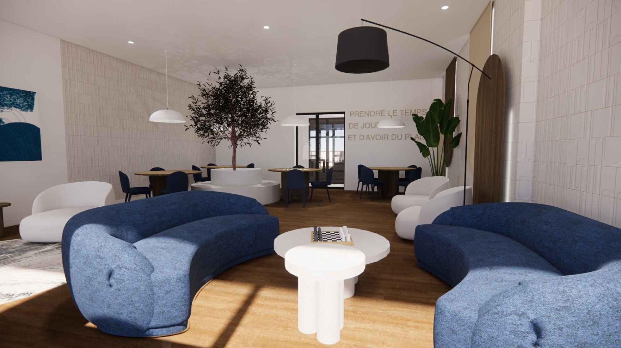 Le troisième et dernier projet 55+ de MARCILLAUD inclut plusieurs aires communes. Un immense hall d’entrée, espace lounge et au salon, bibliothèque, espace de jeux. Un gym et puis une salle communautaire. Coin foyer pour faire du social entre résidents ou avec vos invités.